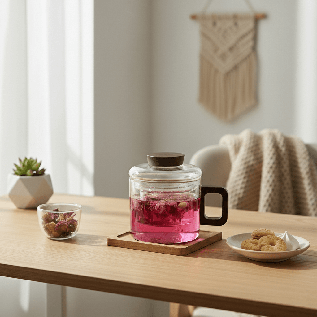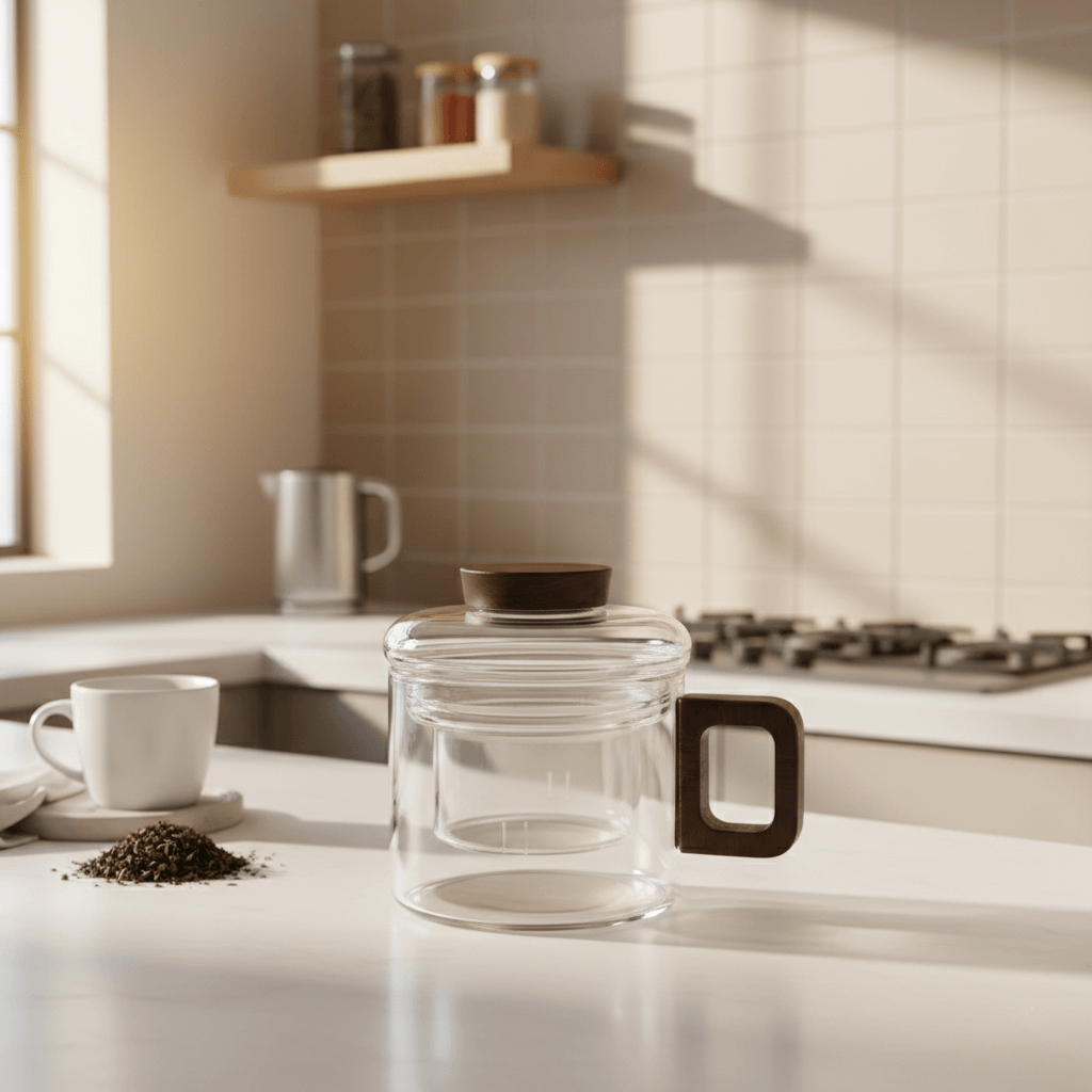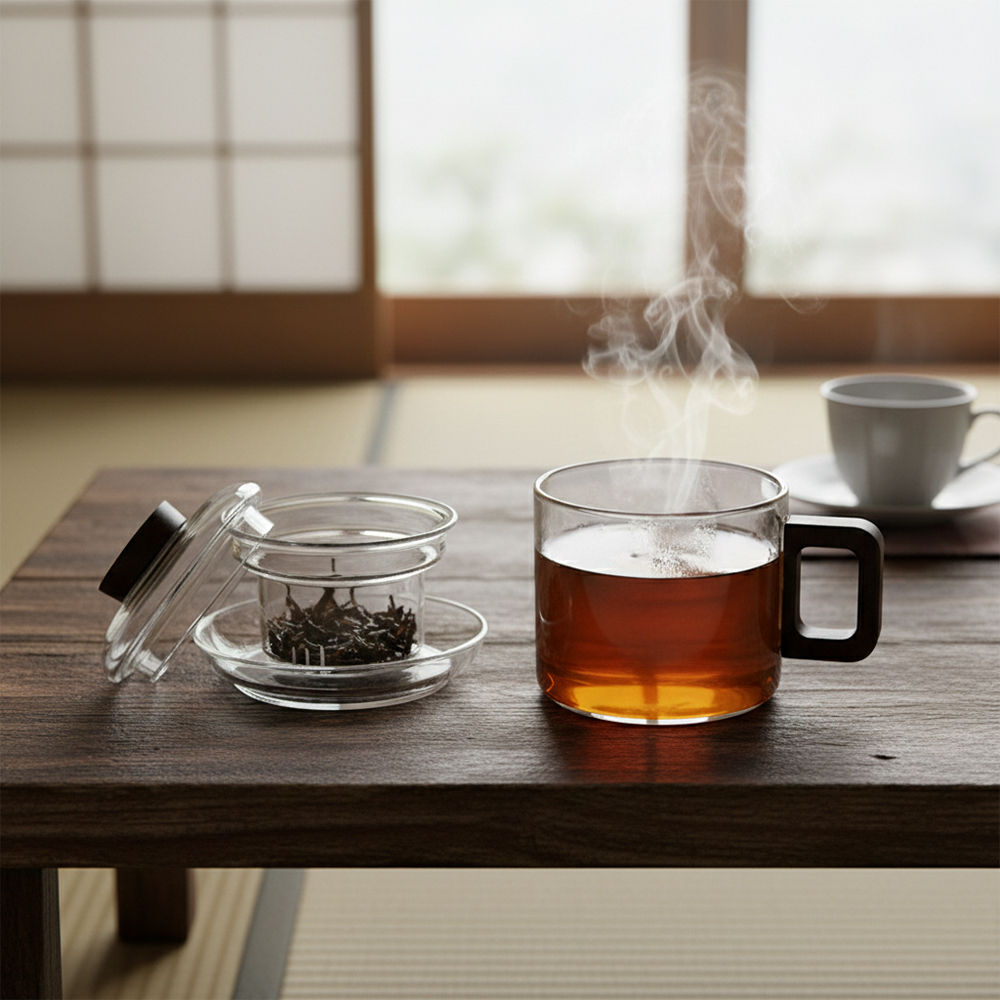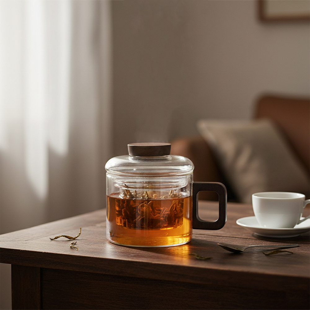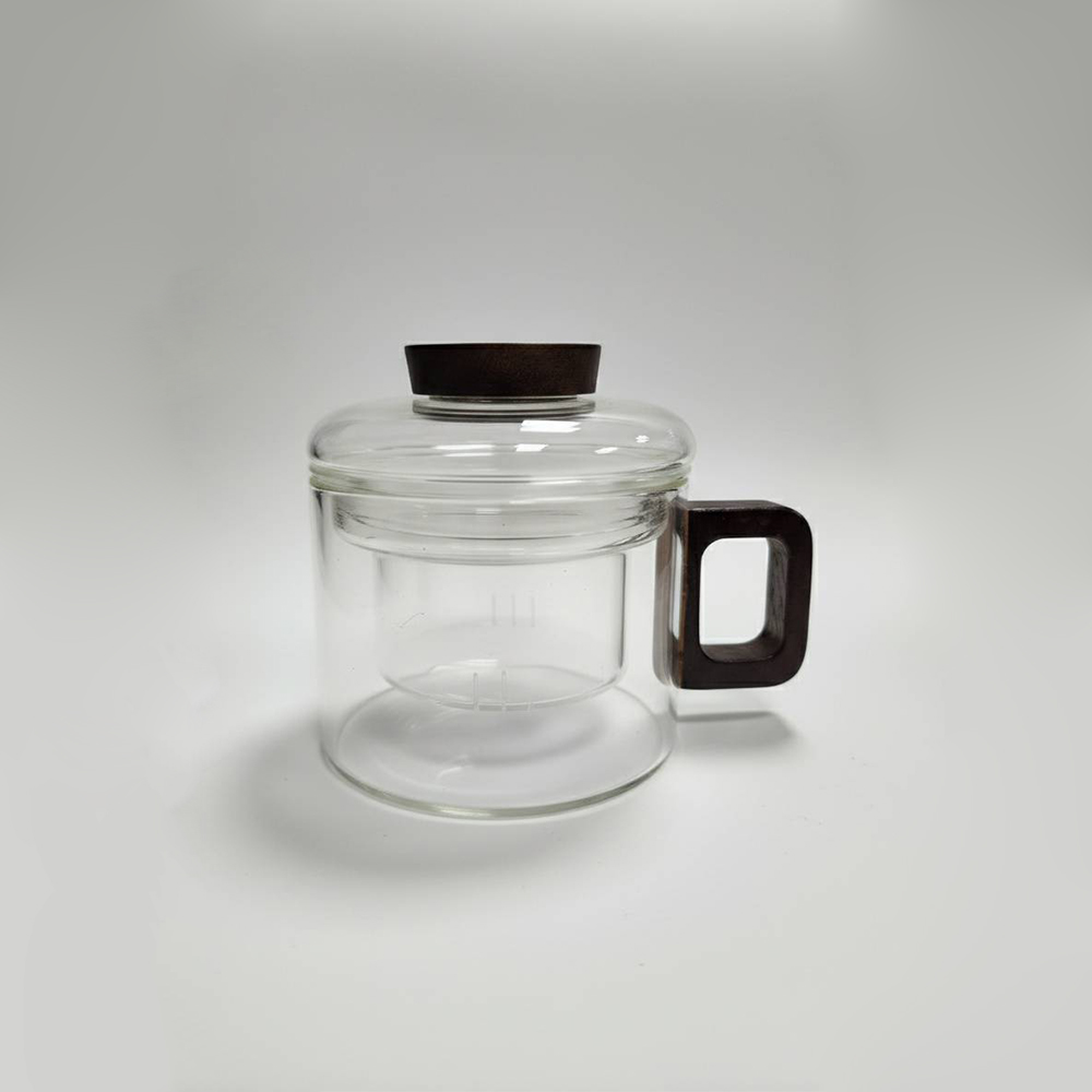 透亮的玻璃杯身搭配富有溫度的深色胡桃木 簡約優雅